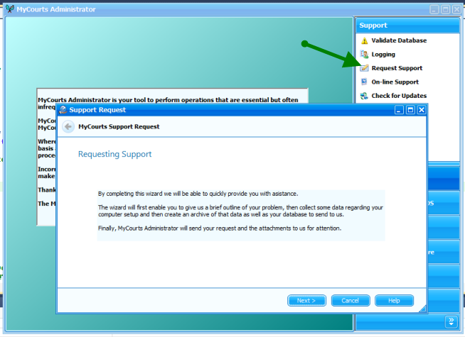 Should an error occur that MyCourts can't handle internally, you will be advised via a separate screen. We would greatly appreciate your submitting the automated error report so we can ensure that future versions of MyCourts will not contain the error. If you include your email address in the report we will respond with a solution as quickly as possible.