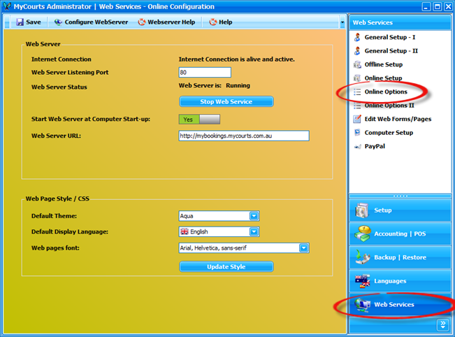 There may be occasions when the default web service listening port of 80 is in use by another application. In these cases you can change the listening port on the MyCourts web service to another port of your choice.